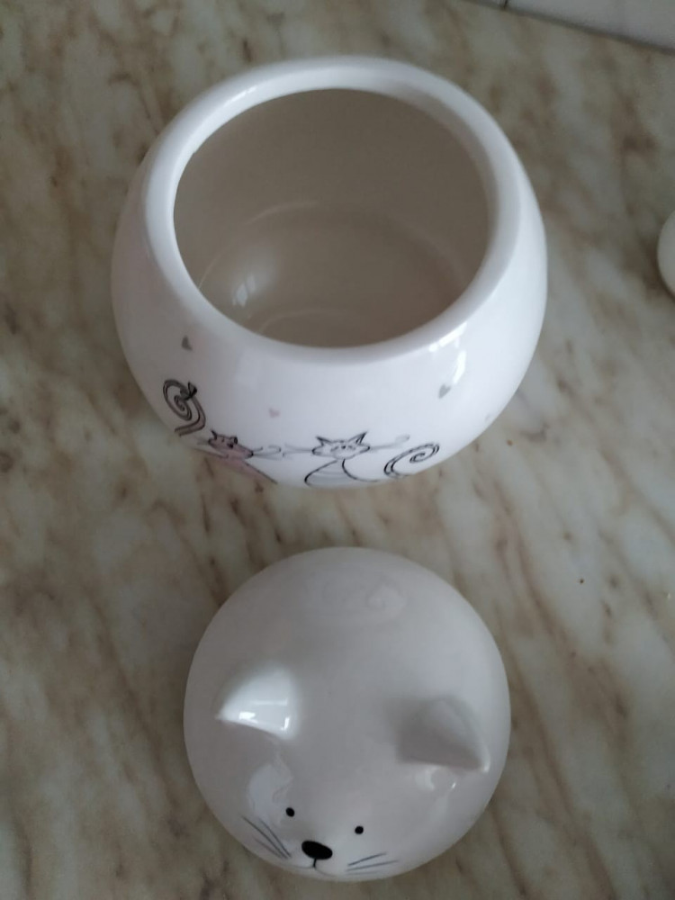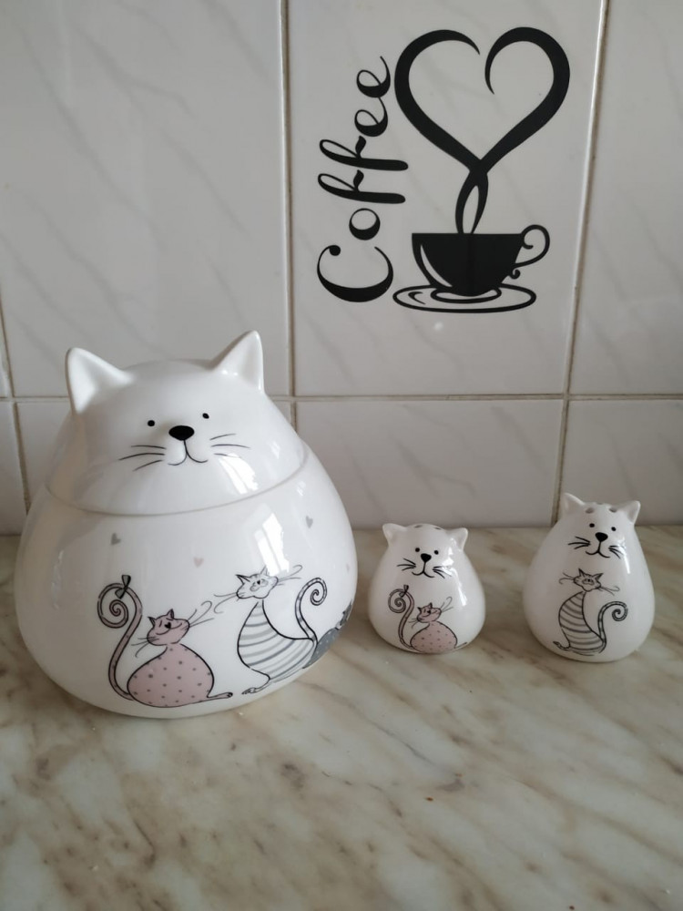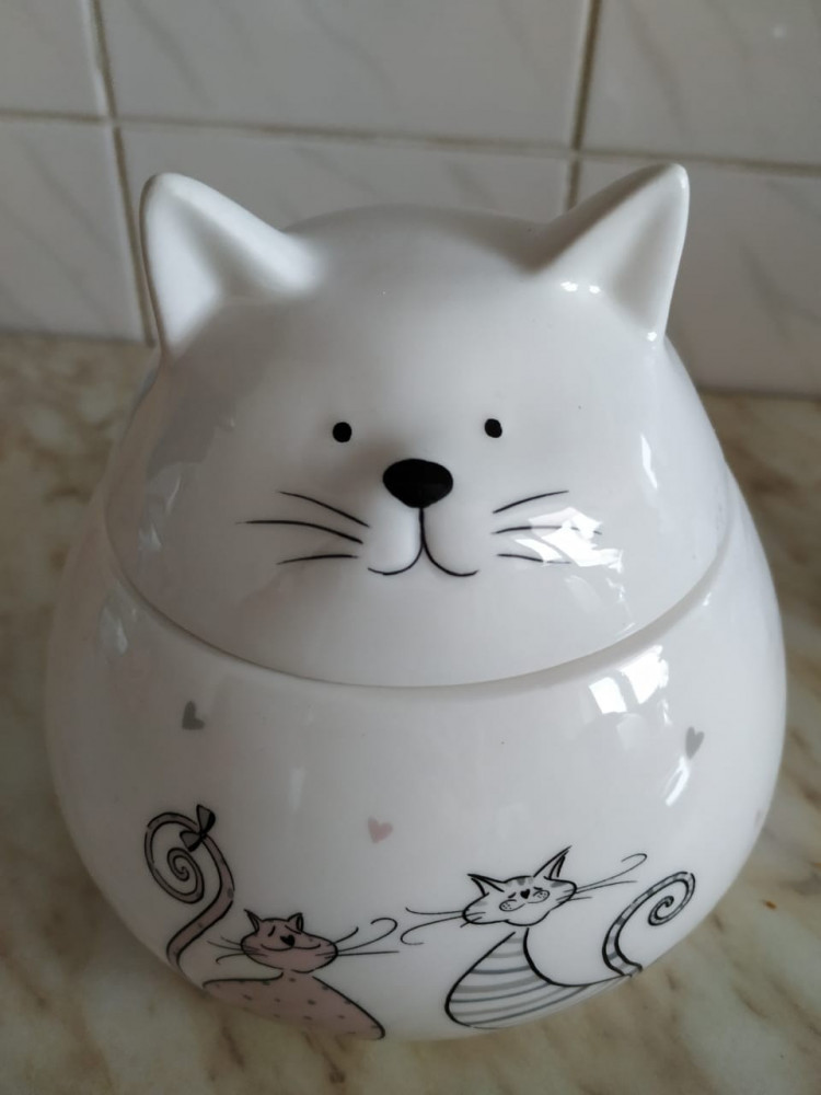 Банка для сыпучих «Котик» просто суперская, очень понравилась. Вся серия с такими котиками на кухне смотрится очень позитивно.