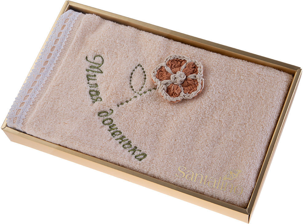 Santalino Полотенце с кружевом «Милая доченька»В данный момент этот товар отсутствует в продаже. Возможно, у нас найдется аналогичный или похожий товар здесь. Полотенце махровое — это лучший выбор для вашей ванной комнаты. Оно очень мягкое и приятное на ощупь, выполнено из натурального хлопка и украшено оригинальной вышивкой. Хлопок отлично зарекомендовал себя в пошиве банного текстиля, благодаря гипоаллергенности, антибактериальным свойствам и устойчивостью к истиранию. Полотенце хорошо впитывает влагу и оказывает легкое массажное воздействие на тело. |