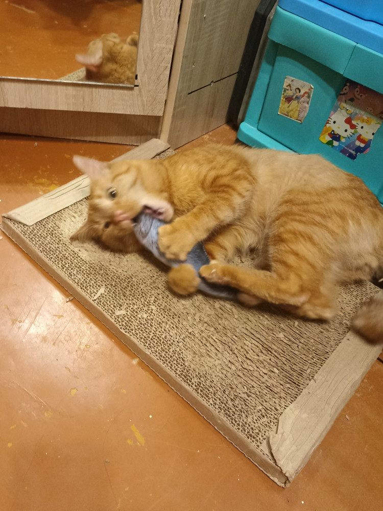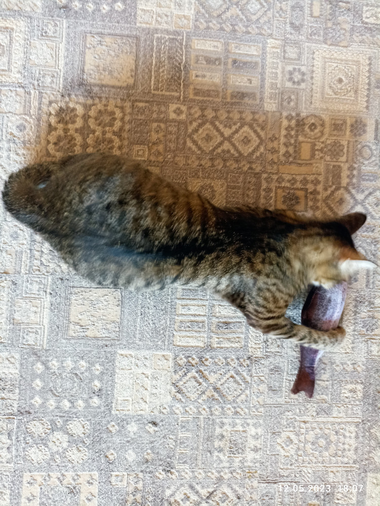 Котямба в восторге! не выпускает из лапок, обнимает, играется, резвится)