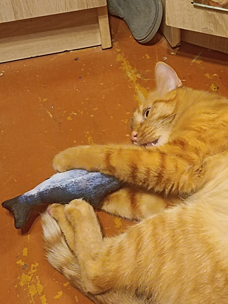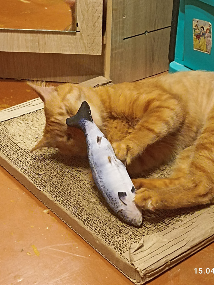 Моему коту очень понравилась. С первой минуты не расстается. Благодаря коту рыба побывала во всех комнатах, делая невероятные кульбиты в воздухе. Спасибо производителю за изделие и флипу за доставку!!!