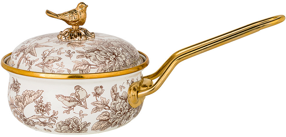 Эмалированный ковш надежно укрывает металл стекловидной эмалью, не позволяя ему контактировать с пищей. Этот вид посуды определенно выигрывает у алюминиевого благодаря своему внешнему виду — на кухне такой ковш всегда выигрышно смотрится. Эмалевое покрытие имеет существенные преимущества по показателям безопасности влияния на организм человека, санитарным свойствам, простоте ухода и рассчитан на длительный срок эксплуатации. Оно устойчиво к перепадам температуры до 220°С, обладает высокой механической прочностью, противостоит воздействию пищевых кислот.