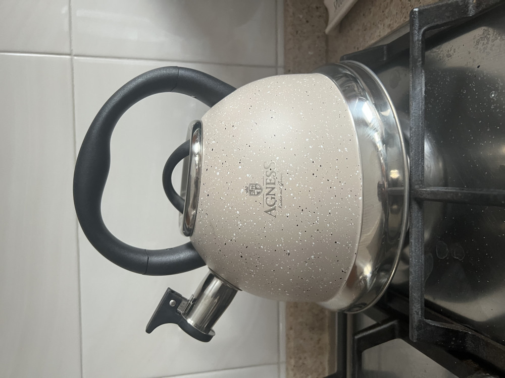 Чайник очень понравился, внешне очень красивый, приятно на него смотреть, а свист слышен аж во дворе. Ручка чайника сгибается на одну сторону и заливать воду удобно, и не нагревается, держать удобно. В общем я в восторге от чайника. Благодарю Флип!!!