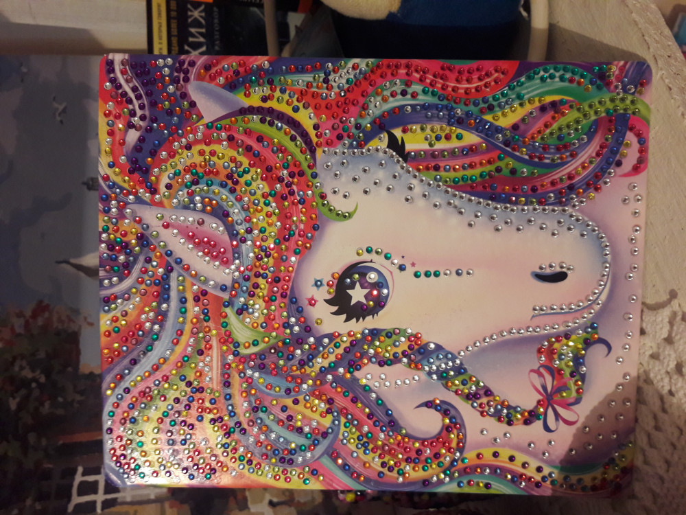 Картина красивая, девочкам понравится. Единственное что не нравится это мелкие стразы - просто глядя на них уже устаёшь)) но главное что детям нравится