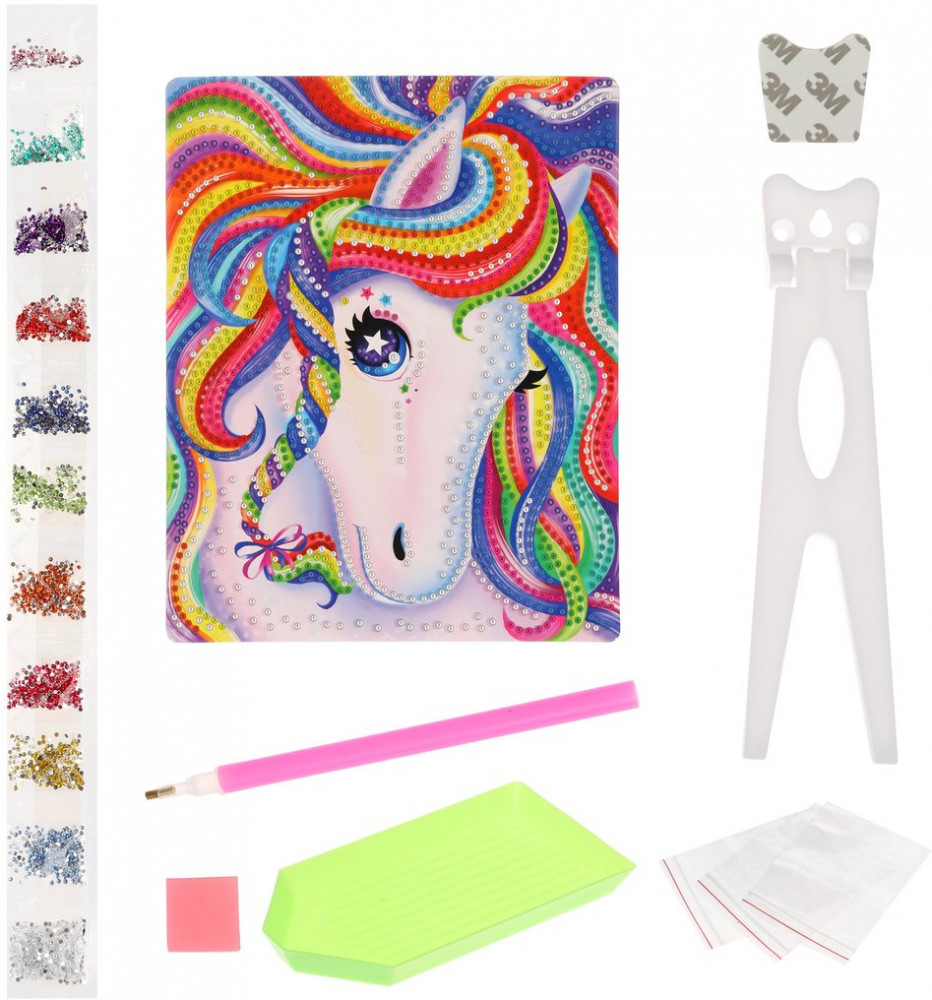 Color Puppy Мозаика алмазная «Радужная лошадка»В данный момент этот товар отсутствует в продаже. Возможно, у нас найдется аналогичный или похожий товар здесь. Серия: Алмазная мозаика Алмазная мозаика — это очень интересный вид творчества, в результате которого получаются красивые блестящие мозаики. С помощью набора маленькая рукодельница сможет оформить эффектную сверкающую картинку, а потом украсить ей свою комнату или преподнести её в качестве подарка близкому человеку. Комплект включает картинку из картона с нанесённой на неё схемой, стразы разных цветов, ёмкость для страз и инструмент для наклеивания страз. |