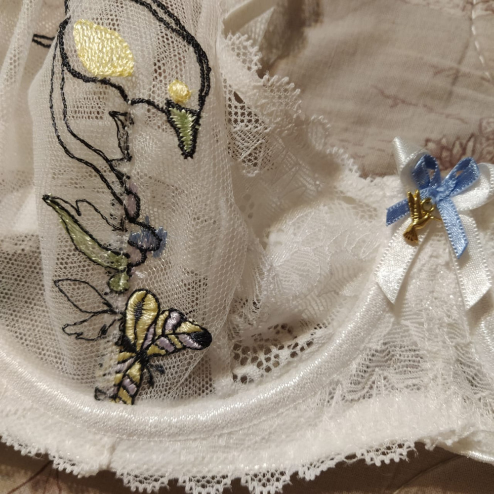 Очень красивое белье. Чашка соответствует размерной сетке, объём нет. На мой 80 объём лиф 80В застегнулся на последний крючок, но всё-таки застегнулся.