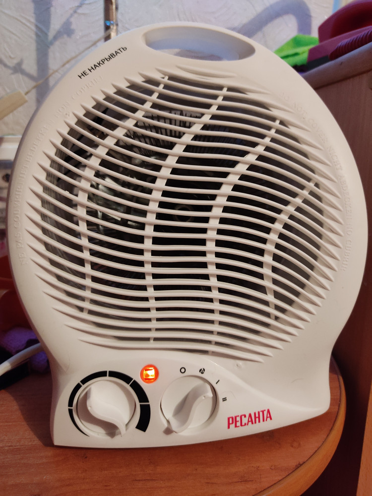 Прибор обустроен спиральным нагревательным элементом. В каждом устройстве подобного типа имеется обычный вентилятор, который перемещает прохладный воздух, подгоняя его к нагревательному элементу. Нагретые воздушные массы устремляются в комнату, благодаря этому помещение отлично греется. Тепловентилятор неплох тем, что может сделать комфортабельную температуру в помещении довольно стремительно. Если воздушный поток, создаваемый вентилятором, имеет неширокую направленность, то можно фактически мгновенно подогреть воздух только там, где это нужно. А летом эти обогреватели просто преобразуются в обыденные вентиляторы.