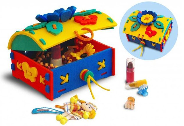 Флексика Шнуровка «Сундучок»В данный момент этот товар отсутствует в продаже. Возможно, у нас найдется аналогичный или похожий товар здесь. Игрушка направлена на развитие у ребёнка памяти, воображения, фантазии, моторики, пространственного и логического мышления. Обучение происходит в процессе игры. Благодаря особой структуре материала и свойству прилипать к мокрой поверхности, является идеальной игрушкой для ванны. |