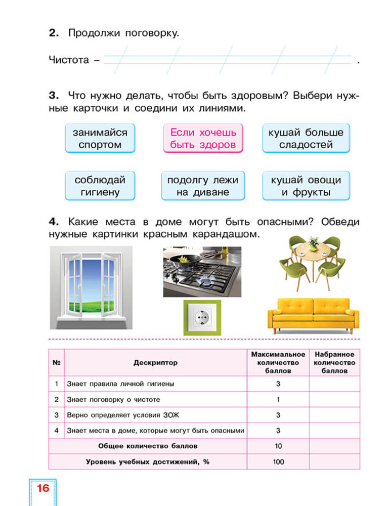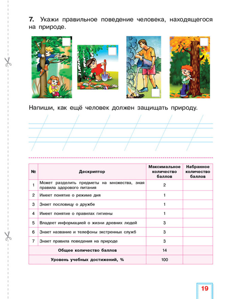 Пособие содержит таблицы, где можно фиксировать динамику развития подготовленности каждого обучающегося, что важно в поддержании целенаправленной активности и самостоятельности обучающегося в достижении цели. В процессе фиксирования осуществляется сбор доказательств, демонстрирующих знания и навыки обучающихся согласно содержанию учебной программы. Для оказания помощи учителю в принятии объективного решения относительно каждого обучающегося к заданиям разработаны дескрипторы и схемы выставления баллов.