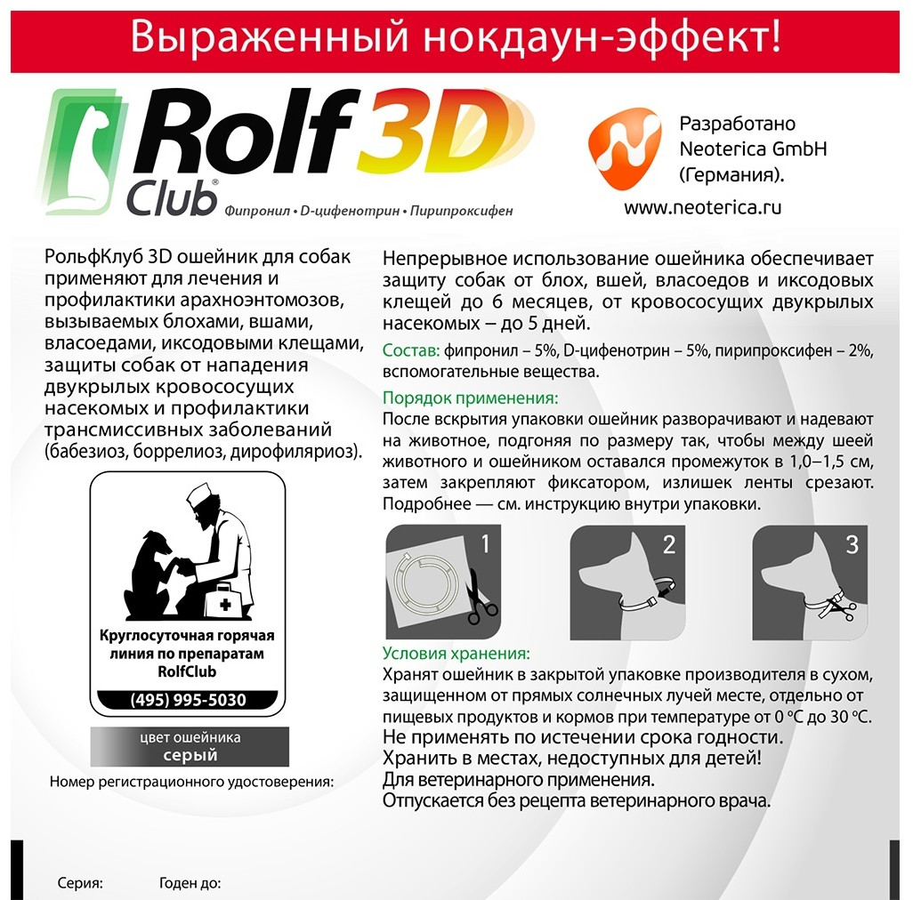 RolfClub 3D Ошейник для крупных собак от блох, клещей, насекомых-20% +128 защита запах соответствие
