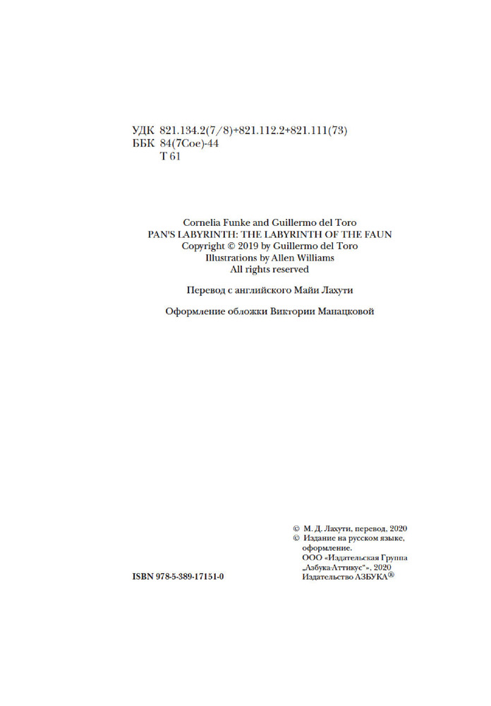Лабиринт ФавнаКорнелия Функе, Гильермо дель Торо В данный момент этот товар отсутствует в продаже. Возможно, у нас найдется аналогичный или похожий товар здесь. Серия: The Big Book Впервые на русском — уникальный продукт коллективного творчества: книга, написанная современным классиком Корнелией Функе по мотивам знаменитого фильма «оскаровского» лауреата Гильермо дель Торо «Лабиринт Фавна» и проиллюстрированная мастером сказочной иллюстрации Алленом Уильямсом. В этой фантазии поистине эпического размаха читатель встретит мифических трикстеров и кровожадных чудовищ, жестоких солдат и отважных мятежников, и потерянную принцессу, не теряющую надежды отыскать дорогу домой... |