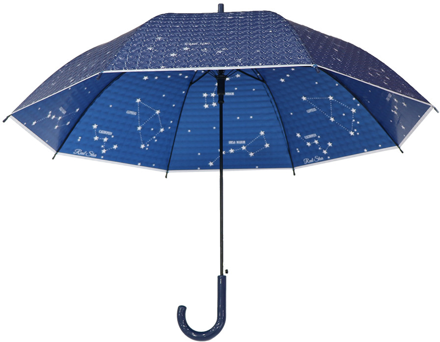 Классный зонт. Из типа целлофана, но очень красиво - звездное небо просвечивает и такое классное ощущение. Очень довольна.