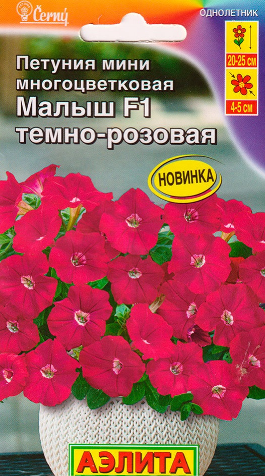 Аэлита Петуния темно-розовая «Малыш F1»+16 всхожесть компактность цветение активно