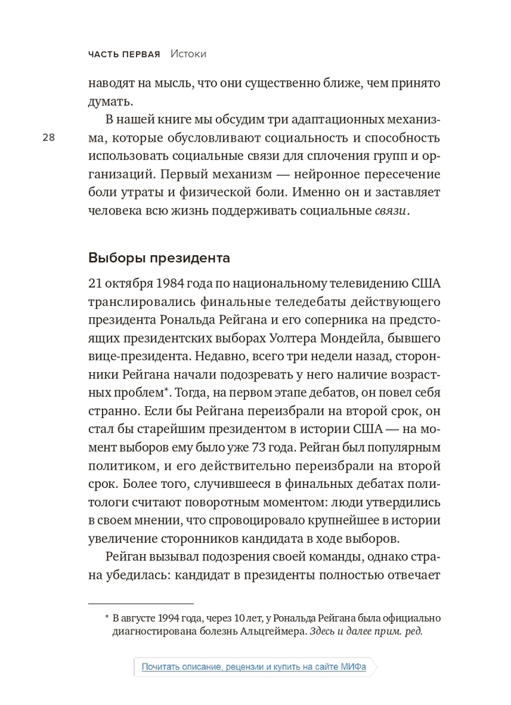 Социальный вид. Почему мы нуждаемся друг в другеВ данный момент этот товар отсутствует в продаже. Возможно, у нас найдется аналогичный или похожий товар здесь. В этой книге Мэттью Либерман подробно исследует социальность. Он утверждает, что социальность, то есть потребность в связи с себе подобными, лежит в нас гораздо глубже и влияет на нас гораздо сильнее, чем принято считать. Это подтверждают данные разнообразных экспериментов и МРТ-исследований. |
