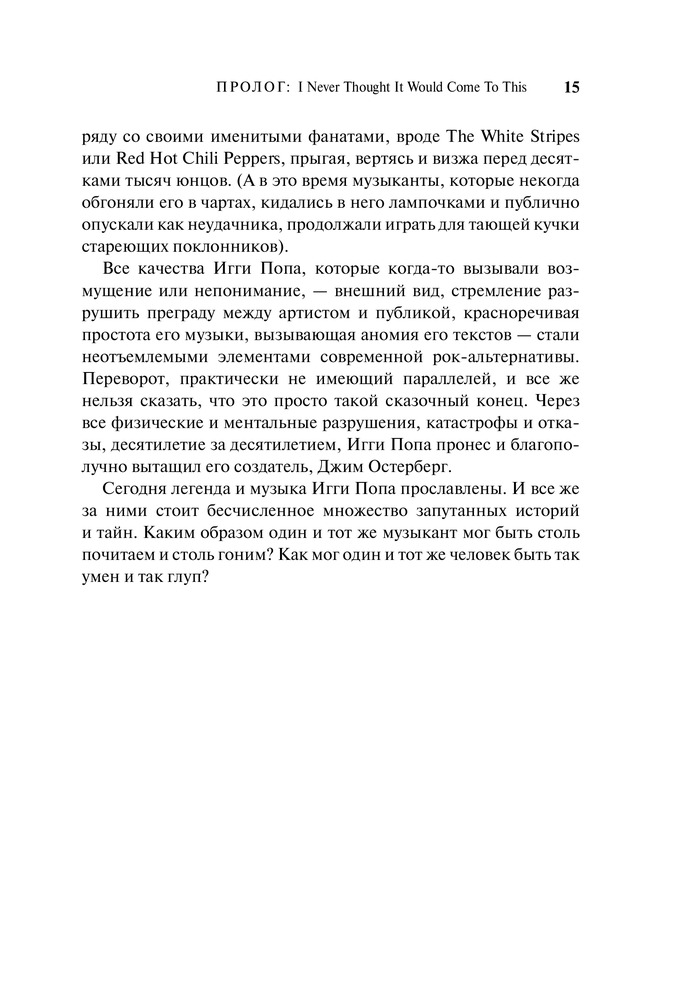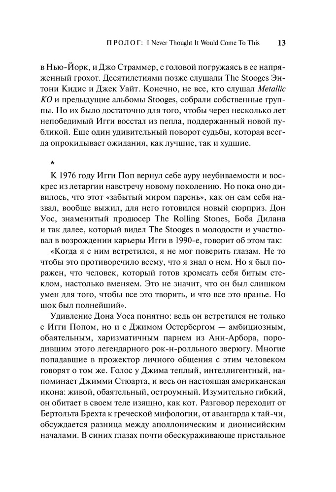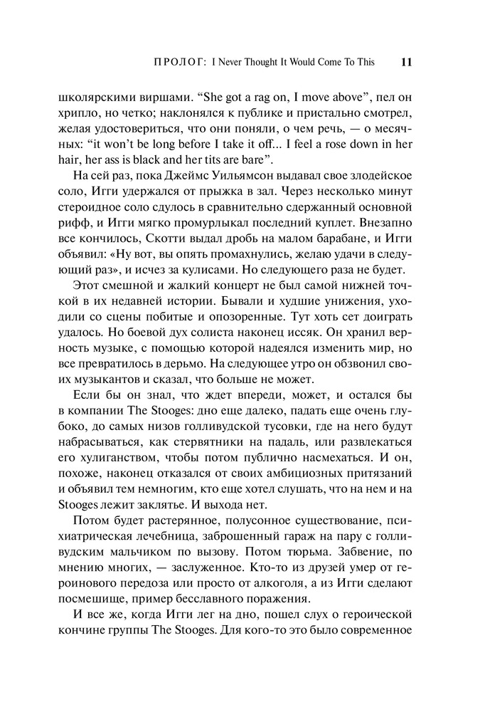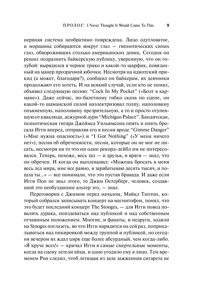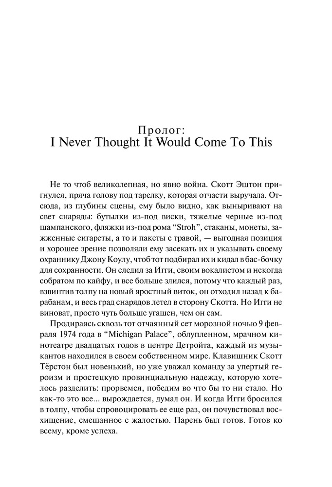 Книга о том, как яркий, способный, подающий надежды джим остерберг сломя голову бросился в бурные мутные воды рок-н-ролла. Как родилось, набрало силу (и едва не уничтожило его самого) необузданное альтер эго джима — Игги Поп. Как он всю жизнь бежал от успеха, и все же успех догнал его и теперь бежит рядом. В 2010 году группа the stooges была введена в зал славы рок-н-ролла.