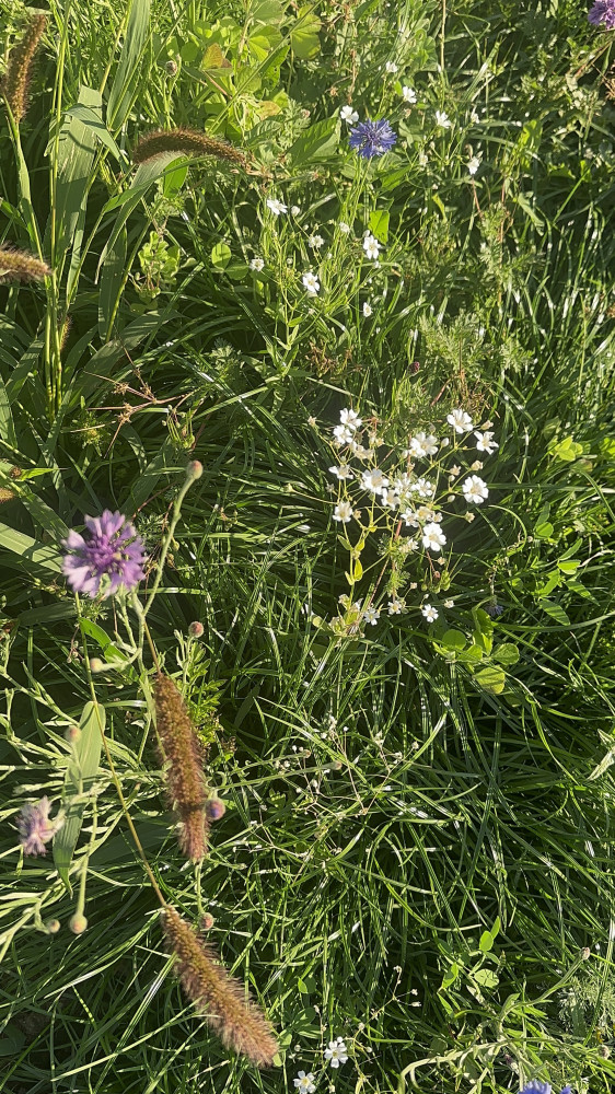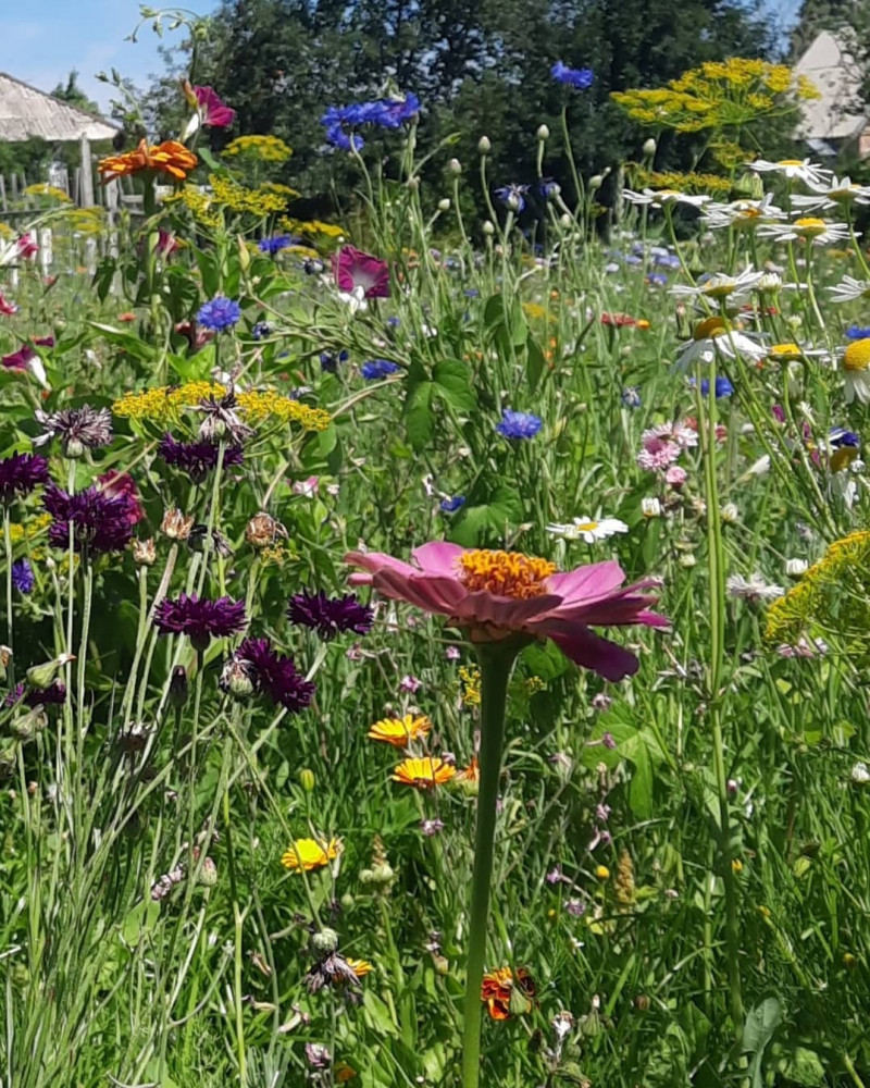 Действительно вырос очень красивый луг. Богатое разнообразие цветов: разноцветные васильки, ароматные фиалки, сочная газонная трава, яркие циннии и многие другие. Покажу фото.