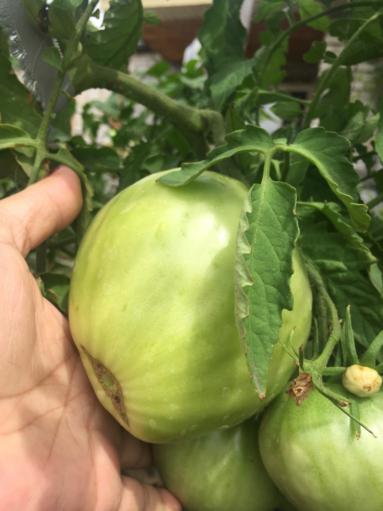 Помидоры очень крупные, сладкие! Стебли гнулись от тяжести, потому что много плодов. Шкурка тонкая.