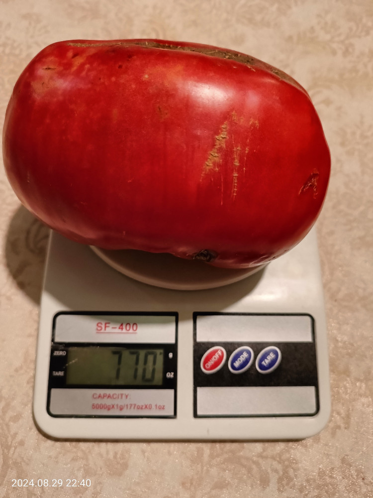 Очень урожайный сорт,на стадии рассады какие-то были тоненькие,нескладушные,листики скручивали,а когда стали вязать плоды,вот тут-то я и очаровалась ими,кисти по шесть огромных помидорин и ещё вяжут.Плоды сладкие,большие и очень мясистые,600 граммов точно есть в одной помидорке,но не все такие конечно,но они стоят того,чтобы их садить каждый год.Рекомендую.