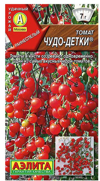 Аэлита Томат «Чудо-детки»В данный момент этот товар отсутствует в продаже. Возможно, у нас найдется аналогичный или похожий товар здесь. Высокоурожайный сорт черри-томата сверх раннего срока созревания. От всходов до первого сбора 95-105 дней. Для пленочных теплиц и о/г. Растения индетерминантные, высотой 1,6-1,8 м. Плоды массой 5-7 г, очень сладкие, сочные и ароматные. Подходят для консервирования в небольших банках. Сорт устойчив к бурой пятнистости, ВТМ, МР, корневой и вершинной гнилям. |
