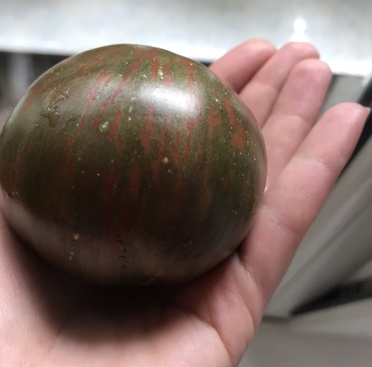 Великолепный салатный сорт томатов с уникальной окраской плодов. Раннеспелый — первый урожай собирают через 95-110 дней после всходов. Подходит для выращивания в защищенном и открытом грунте. Растения индетерминантные, высотой 1,6-1,8 м. Плоды плоскоокруглой формы, массой 300-350 г. Число камер более шести. Окраска незрелого плода — зеленая с более темным пятном. Томаты достаточно плотные, мясистые. Обладают богатым томатным вкусом, терпкие, не кислые. Отлично подходят для бутербродов и для переработки на томатопродукты (кетчуп, сальса). Сорт слабовосприимчив к болезням. |