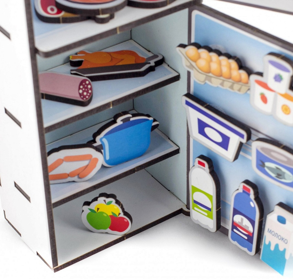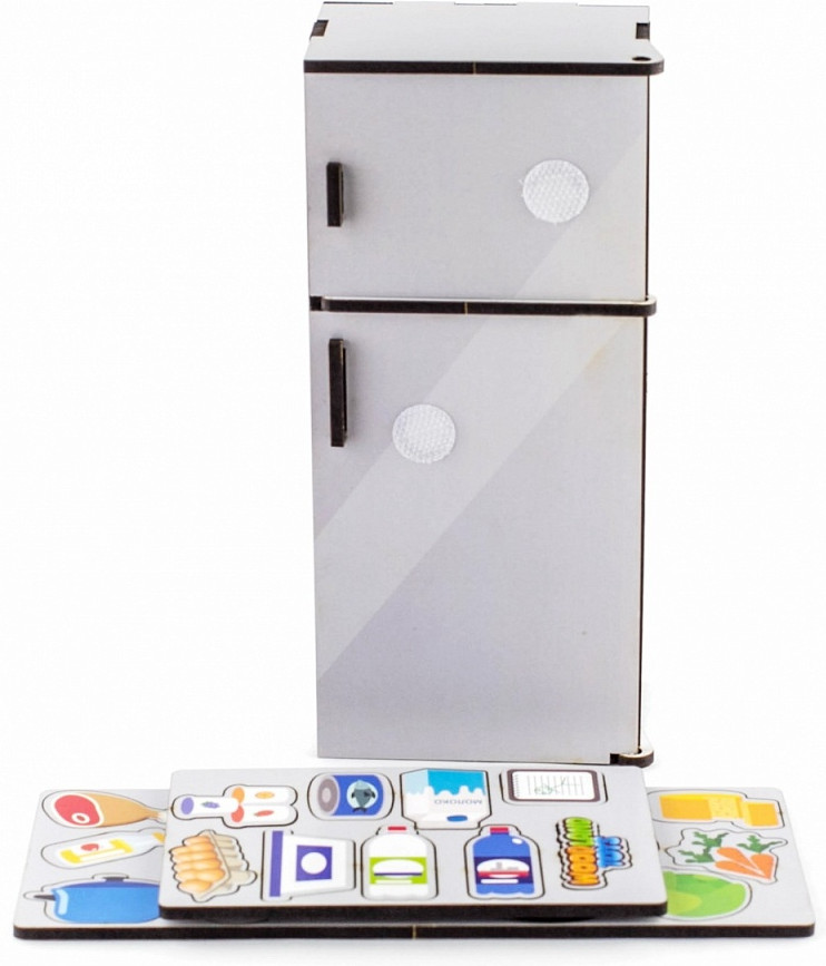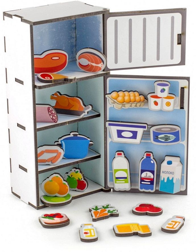 WoodLandToys Сортер «Холодильник»В данный момент этот товар отсутствует в продаже. Возможно, у нас найдется аналогичный или похожий товар здесь. Сортер «Холодильник» — удивительная игрушка для формирования навыков сортирования и развития мелкой моторики. Игрушка представляет собой конструкцию в виде холодильника с полочками, открывающимися дверцами и комплекта фигур с изображениями продуктов. Задача ребенка — распределить фигурки в соответствии с их назначением: в морозилку — продукты для заморозки; на дверцы — фигурки с липучкой, остальные детали — на полки холодильника. Игры с сортером «Холодильник» тренируют моторику рук, координацию движения, развивают ловкость, мышление, тактильное и зрительное восприятие. Процесс игры с холодильником положительно влияет на усидчивость, терпение и любознательность. |