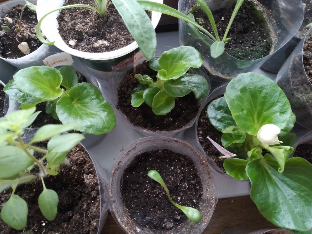 из 5 ти взошли 4. На фото Саката и два сорта Аэлита. Нормально развивается только Саката, остальные никак. Посажены в один день и одинаковые условия.