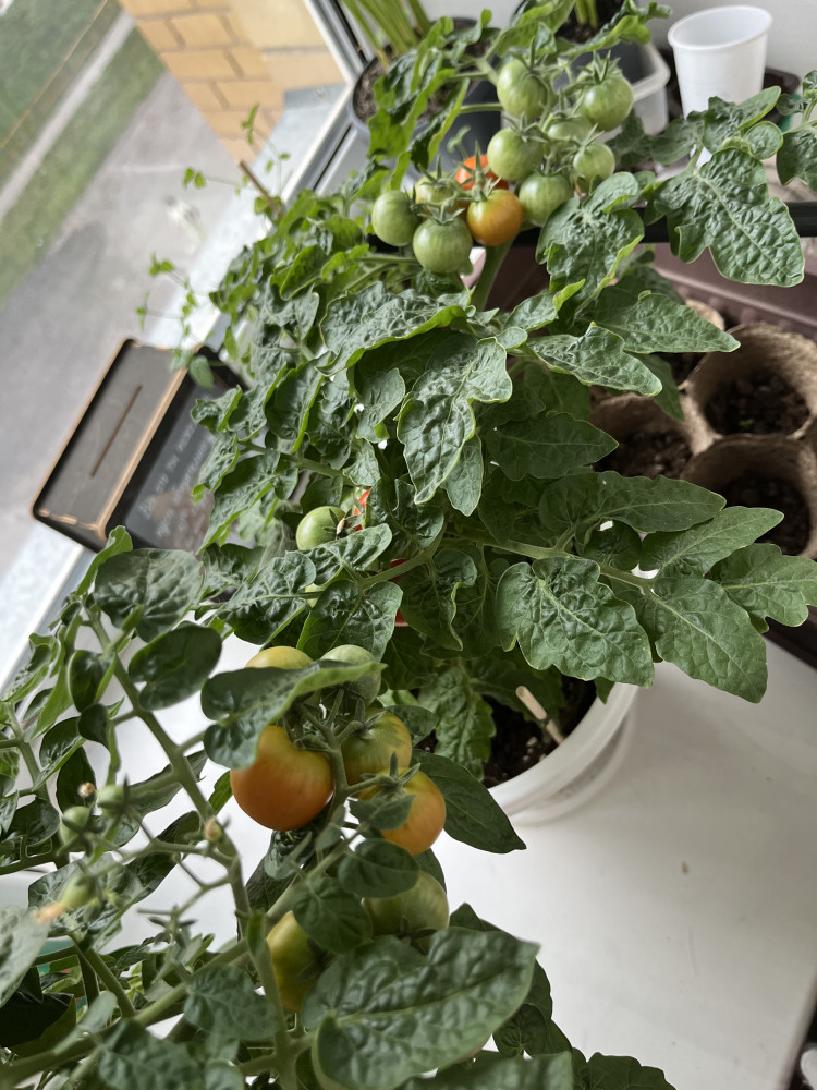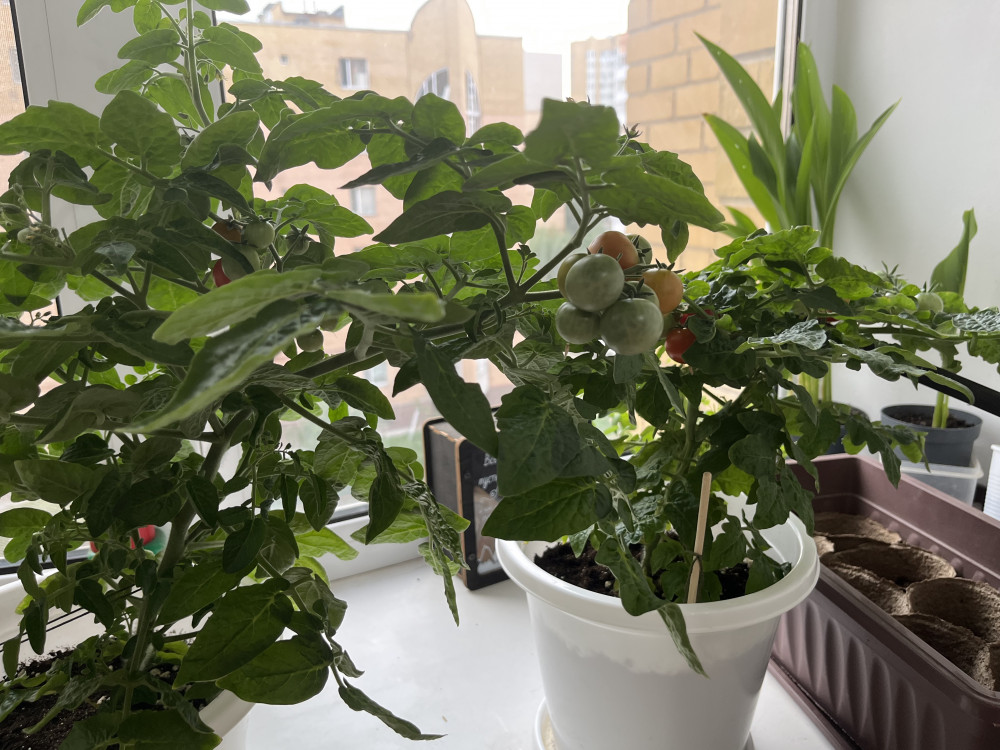 Всхожесть у помидор действительно отличная: взошло 23 куста (рассчитывала на 3-4). по факту кусты выросли невысокими (по 30-35см), но ровными. почему-то время цветения и созревания помидор на всех кустах было разным, хотя сажались они одновременно, но это даже к лучшему, ели понемногу и долго))) самих плодов на каждом кустике было не много, по размеру как черри и меньше. несмотря на не сильно большой урожай лично мне итог понравился, однозначно лучше выращивать у себя на окне помидоры чем, допустим, фиалки)))