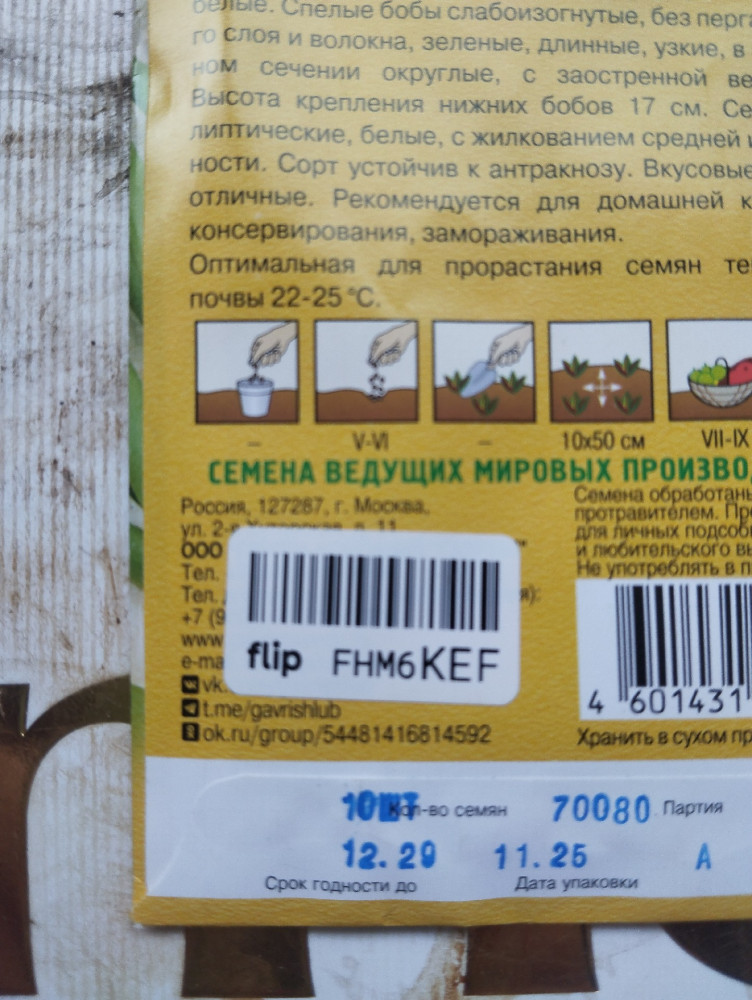 Гавриш Фасоль спаржевая «Серенгети»+3 высокая урожайность без волокон нежные стручки низкая всхожесть плохое качество семян