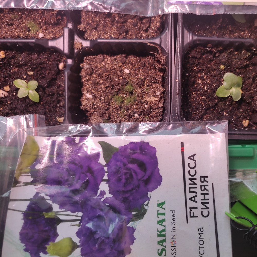 Из 4-х семян взошли только 2. Из 4-х видов посаженных эустом у этой самые мелкие и слабые ростки