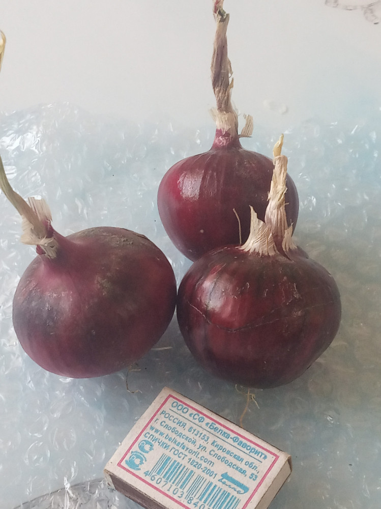 Отличный лучок. Сначала ели пучок с небольшой головкой, но всё не осилили и лук вырос в приличную головку, с отличным сладким вкусом. Луковицы красные.