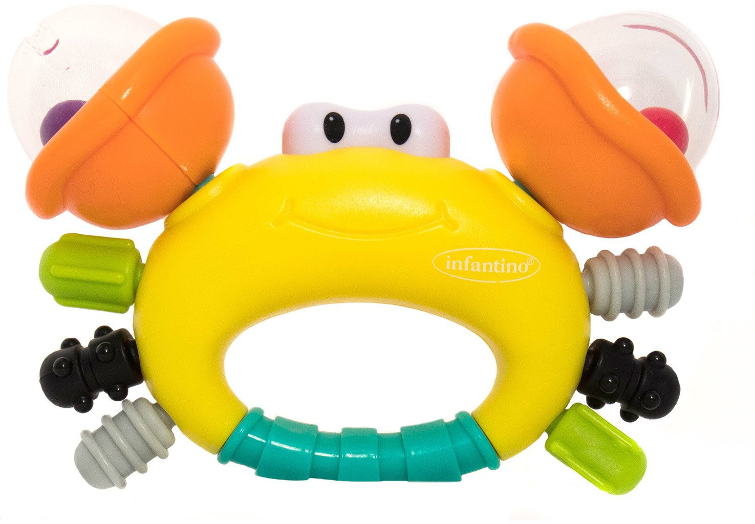 Infantino Игрушка развивающая «Краб»В данный момент этот товар отсутствует в продаже. Возможно, у нас найдется аналогичный или похожий товар здесь. Игрушка «Краб» — это погремушка-прорезыватель с массажером для десен. У этого краба погремушки с цветными шариками в клешнях, а сами клешни крутятся. Прорезыватель надолго займет любознательного малыша. У игрушки есть рельефные поверхности, которыми удобно чесать режущиеся зубки. Эргономичная, специально разработанная ручка, для захвата маленькой детской рукой. |