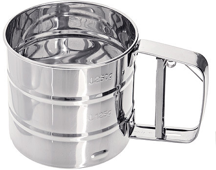 Очень удобное сито. Муку позволяет просеивать сразу в хлебное ведёрко. Процесс просеивания качественный, быстрый. Просеивает при наполнении всего объёма ( 250гр). Для удобства при просеивании придерживаю кружку другой рукой.