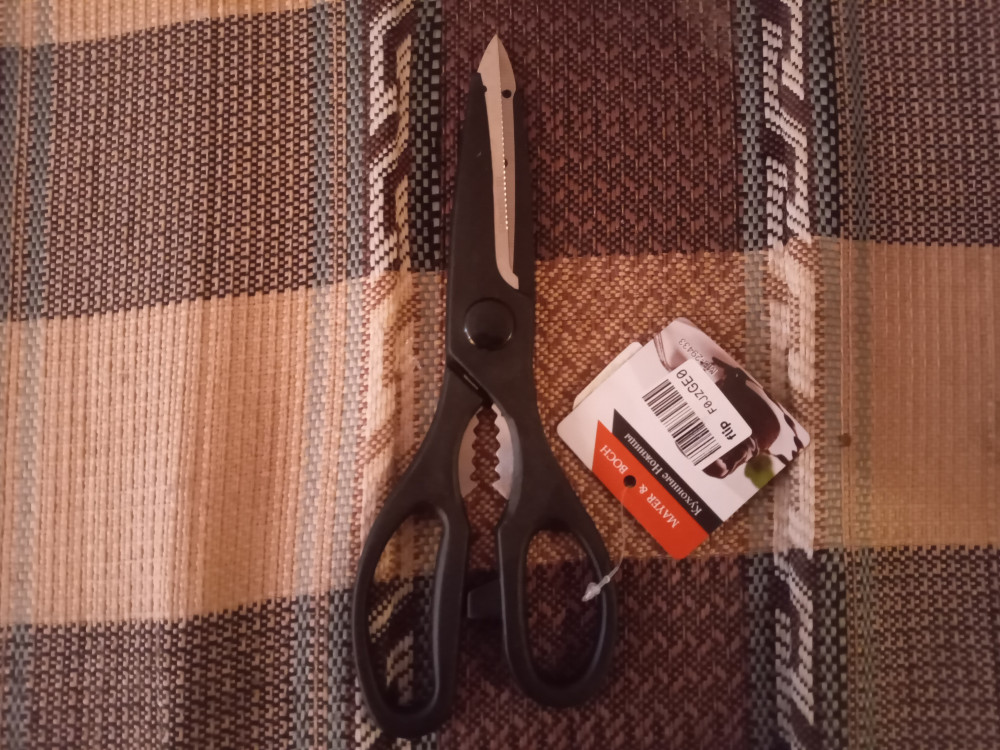 Ножницы понравились и нашли свое место на кухне. Режут хорошо, крепкие, в руках удобные, удушающим пластиком не пахнут.