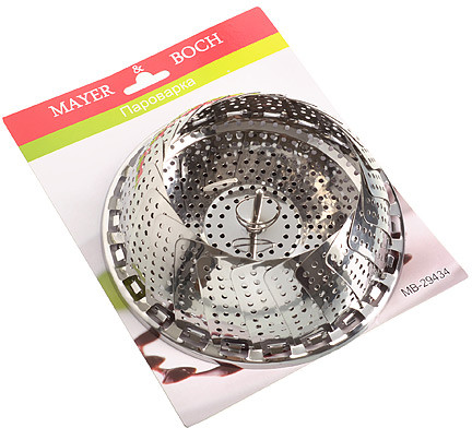 Mayer & Boch ПароваркаВ данный момент этот товар отсутствует в продаже. Возможно, у нас найдется аналогичный или похожий товар здесь. Складная паровая решетка «Mayer&Boch» выполнена из высококачественной нержавеющей стали, идеально подходящей для приготовления пищи, изделие не окислится со временем и не испортит вкус Ваших блюд. Пароварка универсального использования: подходит как для приготовления, так и для разогрева блюд на пару. В сложенном виде занимает мало места. Подходит для мытья в посудомоечной машине. |