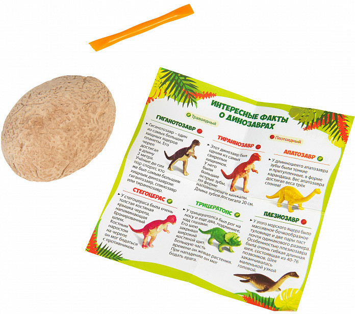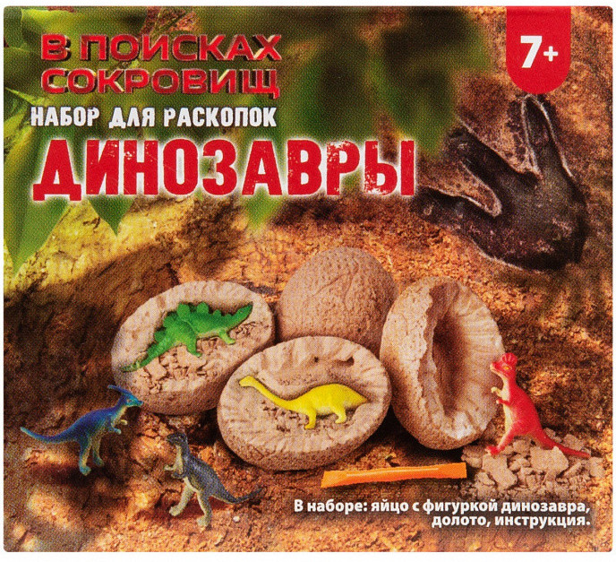 В поисках сокровищ Набор для раскопок «Динозавры»В данный момент этот товар отсутствует в продаже. Возможно, у нас найдется аналогичный или похожий товар здесь. Набор для раскопок — это уникальная коллекция из 12 динозавров, каждый из которых спрятан в гипсовом яйце-сюрпризе. В серии представлены: тираннозавр, трицератопс, плезиозавр, апатозар, паразауролоф, уранозавр, стегозавр, анкилозавр, спинозавр, коритозавр, гиганотозавр, стегоцерас. Раскопай гипсовое яйцо с помощью специальных инструментов, входящих в комплект, и узнай, кто притаился внутри. Почувствуй себя палеонтологом и собери всю коллекцию динозавров! В цветной инструкции ты найдешь познавательную информацию об этих вымерших животных, населявших нашу планету миллионы лет назад. |