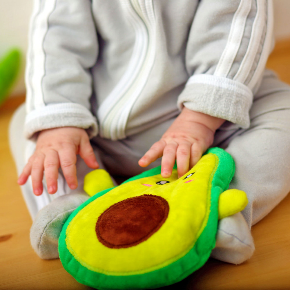Если извлечь вишневые косточки, с игрушкой можно играть, надев на руку. Придумывайте сказки и истории, ребенку это точно понравится! Плюшевый Авокадо, милая вышитая мордочка — все это будет способствовать сенсорному и эмоциональному развитию вашего малыша!