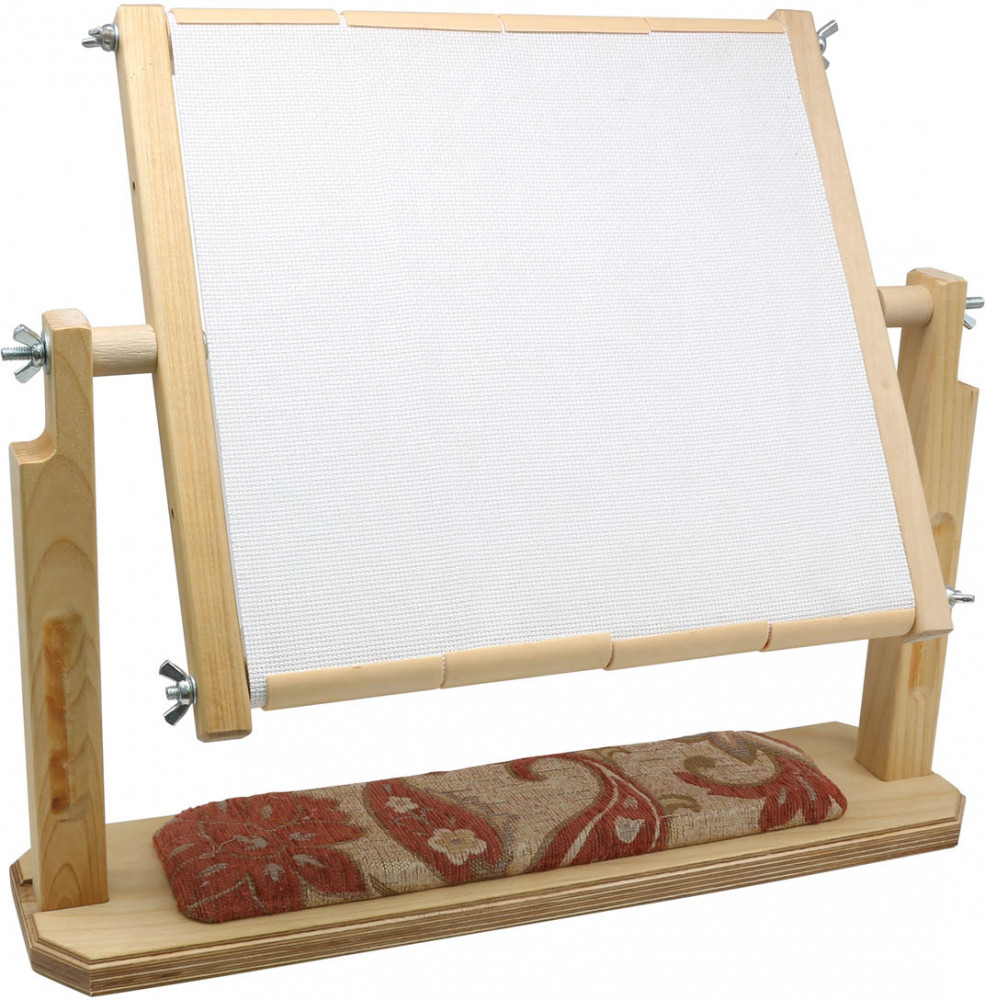 Этот станок мой незаменимый помощник в вышивке. В комплекте приложена инструкция по сборке, по которой станок можно легко собрать и разобрать. Все детали идеально подходят друг к другу, дерево хорошо отполировано и приятное на ощупь. Канва на раму крепиться "клипсами". Все быстро и очень просто. Натяжка у этого станка достаточно хорошая. Для барабанной натяжки нужны боковые растяжки. Их нужно покупать отдельно. Клипсы выполнены из пластика, которые крепят канву хорошо ее захватывают и натягивают. Барашки, которые крепят всю конструкцию очень удобные. Но мне больше всего понравилась подушечка на основании станка, на нее удобно крепить иголку.