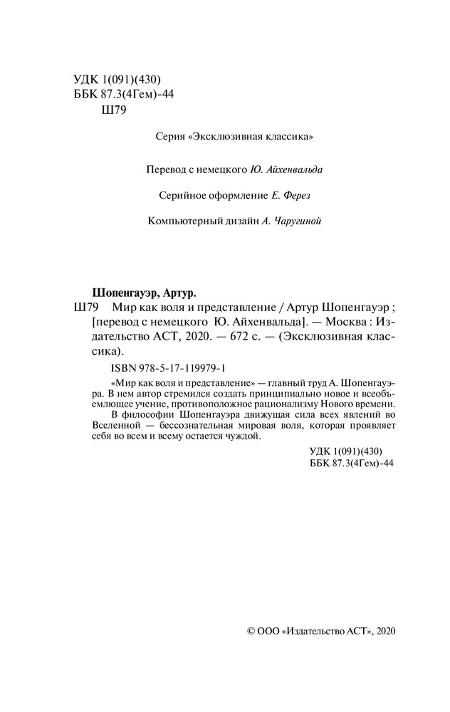 💳 Оплатить за товар можно при получении 🇰🇿 Есть бесплатная доставка по Казахстану 🎁 Копите бонусы с каждой покупки Серия: Эксклюзивная классика «Мир как воля и представление» — главный труд А. Шопенгауэра. В нем автор стремился создать принципиально новое и всеобъемлющее учение, противоположное рационализму Нового времени. В философии Шопенгауэра движущая сила всех явлений во Вселенной — бессознательная мировая воля, которая проявляет себя во всем и всему остается чуждой. |