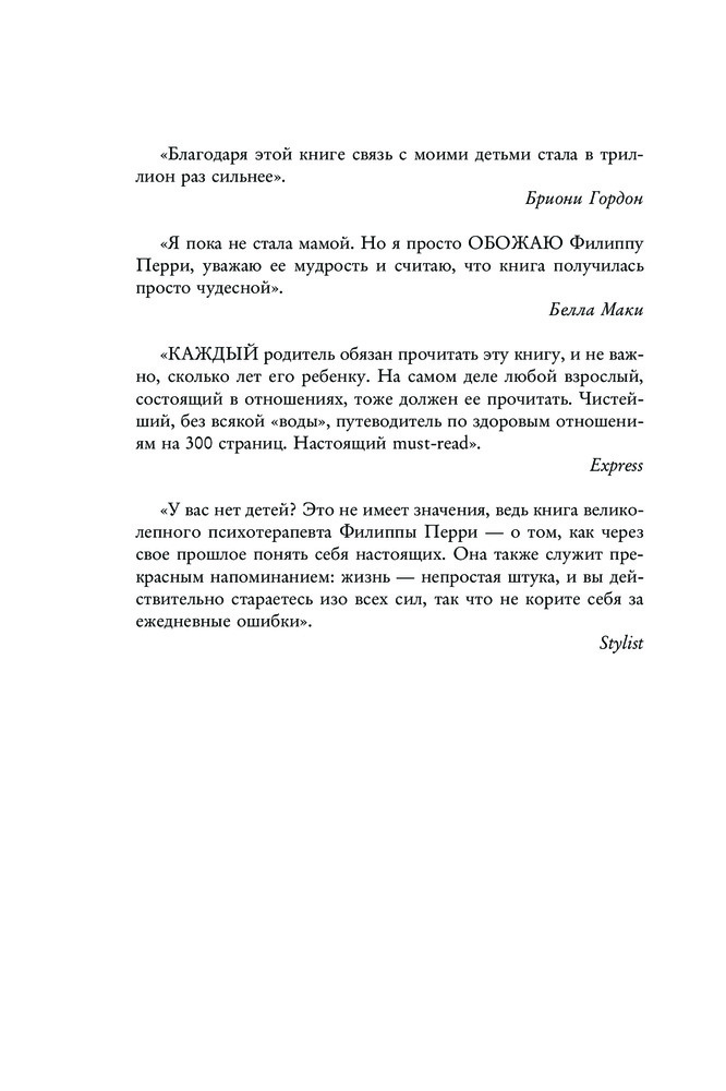 Книга не впечатлила вообще. Лично для себя не увидела какой-то супер новой информации, и язык написания не впечатлил. Еле дочитала и не до конца 😅 В какие-то моменты хотелось просто выбросить, потому что как для себя родителя я читала не о поддержке а чувствовала себя унылым гов..м, и моё любимое у автора - "я пишу это не для того чтобы вы чувствовали себя плохо" 🤦 Это лично мои ощущения и чувства после прочтения. Я просто оставляю свой отзыв, не нужно мой отзыв никак комментировать, давать оценку и тем более советы)
