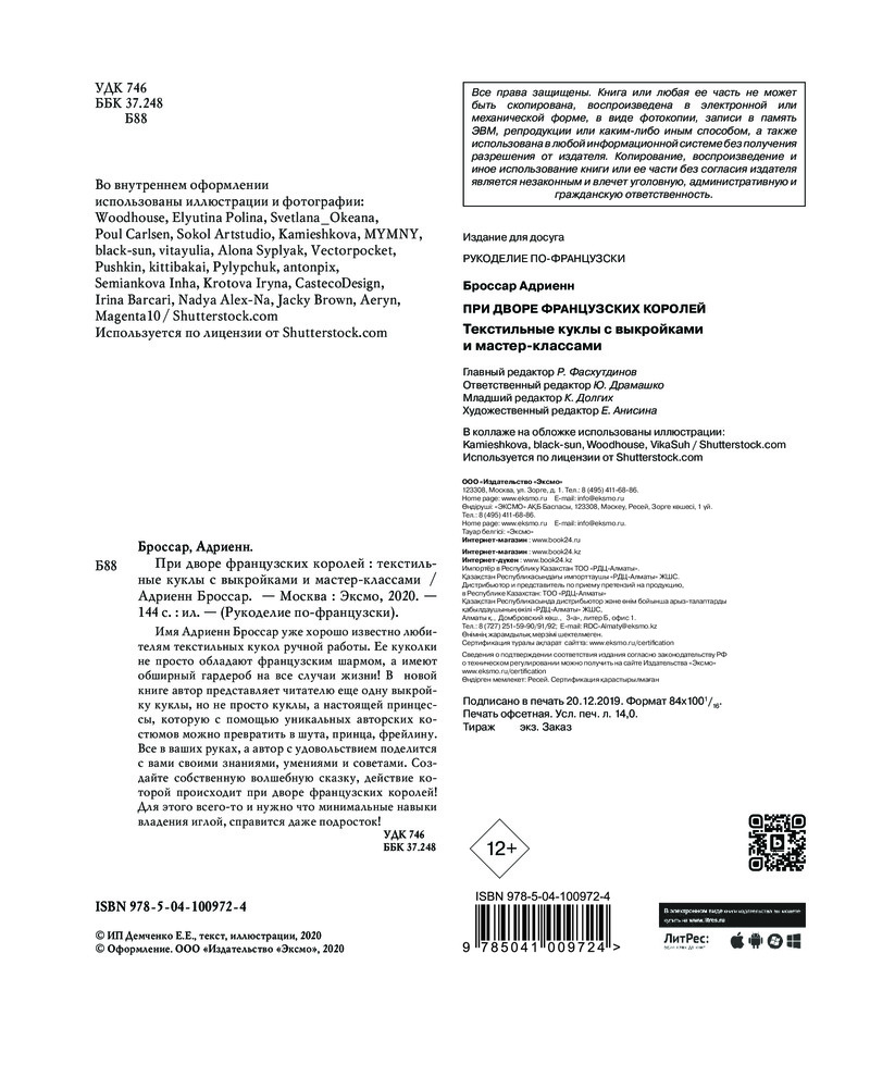 При дворе французских королей. Текстильные куклы с выкройками и мастер-классамиВ данный момент этот товар отсутствует в продаже. Возможно, у нас найдется аналогичный или похожий товар здесь. Серия: Рукоделие по-французски Имя Адриенн Броссар уже хорошо известно любителям текстильных кукол ручной работы. Ее куколки не просто обладают французским шармом, а имеют обширный гардероб на все случаи жизни! В новой книге автор представляет читателю еще одну выкройку куклы, но не просто куклы, а настоящей принцессы, которую с помощью уникальных авторских костюмов можно превратить в шута, принца, фрейлину. Все в ваших руках, а автор с удовольствием поделится с вами своими знаниями, умениями и советами. Создайте собственную волшебную сказку, действие которой происходит при дворе французских королей! Для этого всего-то и нужно что минимальные навыки владения иглой, справится даже подросток! |