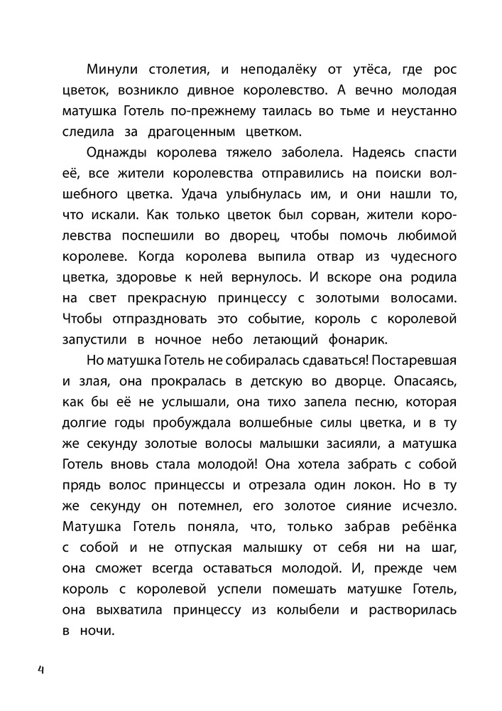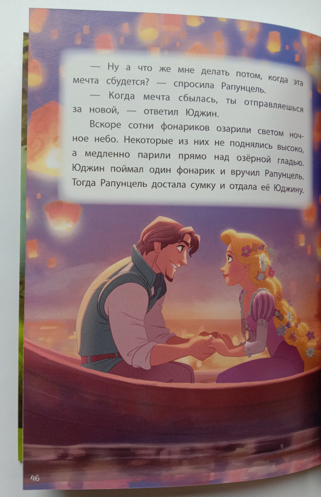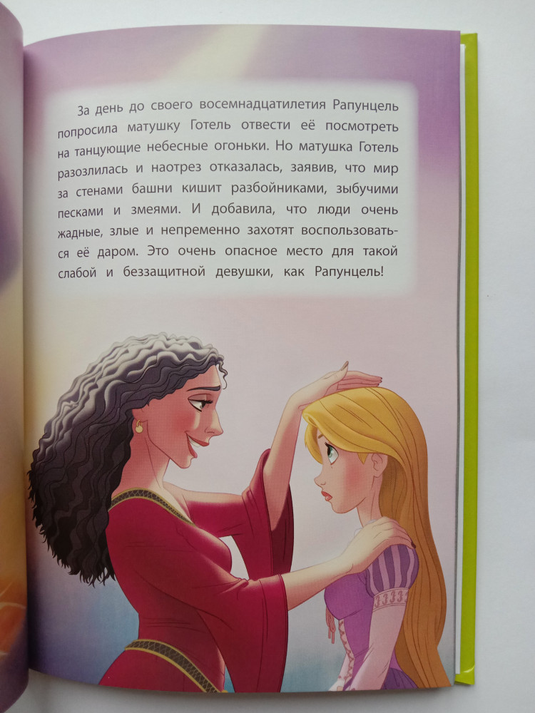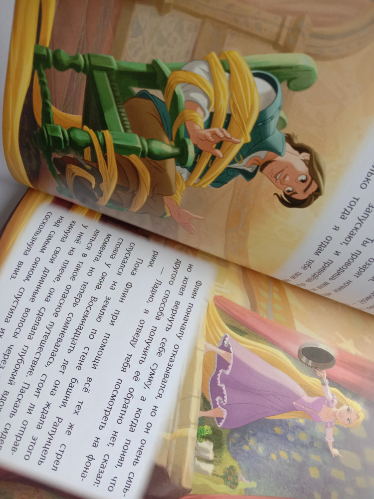 Посмотрели сначала мультфильм "Рапунцель" и решили купить сказку о ней. Сюжет такой же как и в мультике 🙂👍