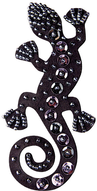 Элегантность и блеск черного цвета — в модной серии нашивок «Black patch»! Готовая фигурка из фетра — изящный силуэт ящерицы, бисер с эффектом гематита и мерцающие пайетки помогут создать дизайнерское изделие и украсить им любимое однотонное платье, сумочку или головной убор!