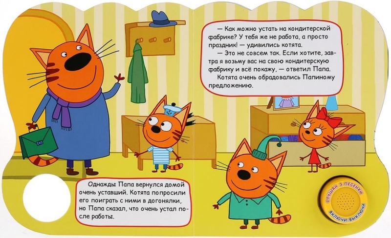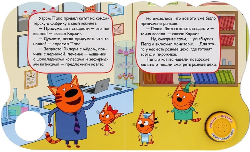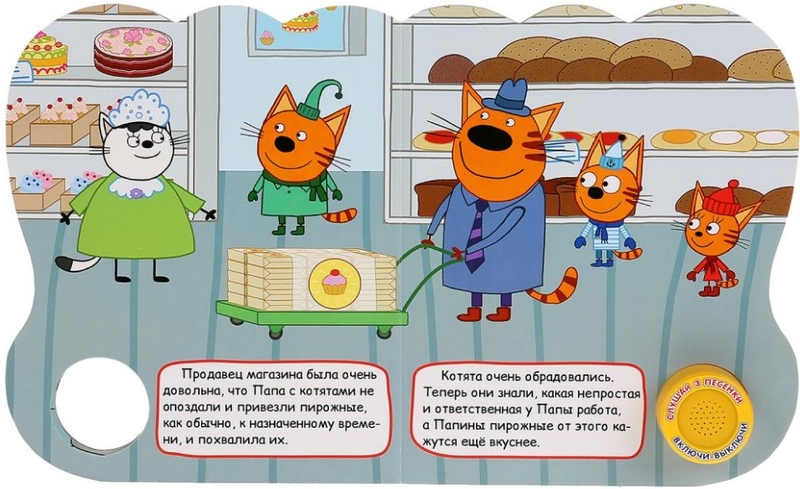 УМка Котята кондитеры. Три кота (1 кнопка 3 песенки)В данный момент этот товар отсутствует в продаже. Возможно, у нас найдется аналогичный или похожий товар здесь. Задумываетесь о том, как привить ребёнку любовь к чтению? Рецепт прост: возьмите издание с красивыми картинками, захватывающей историей и милыми героями. |