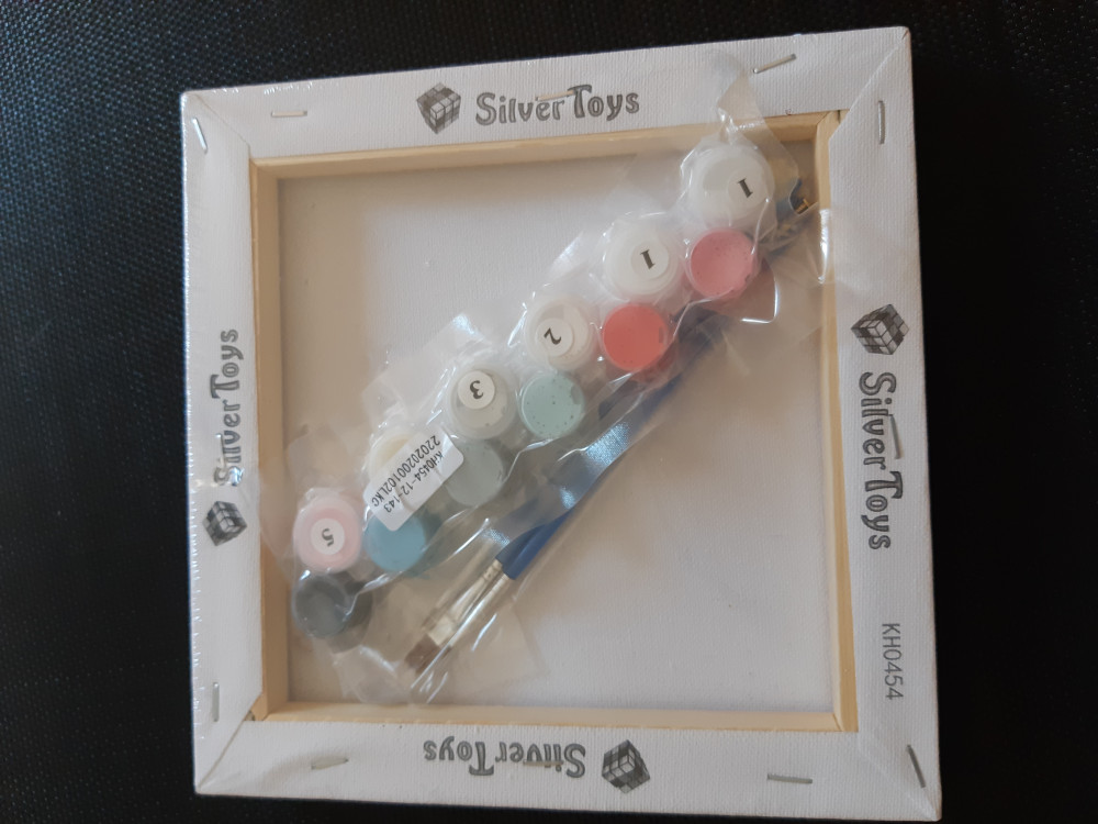 Все есть в комплекте: холст, краски, кисточки