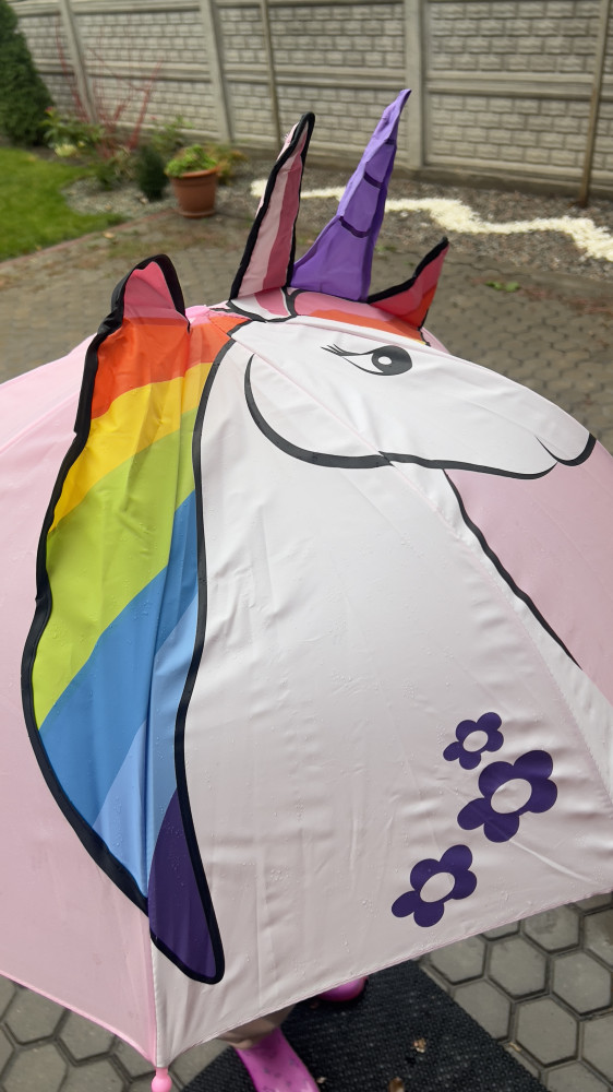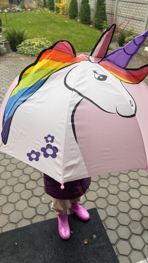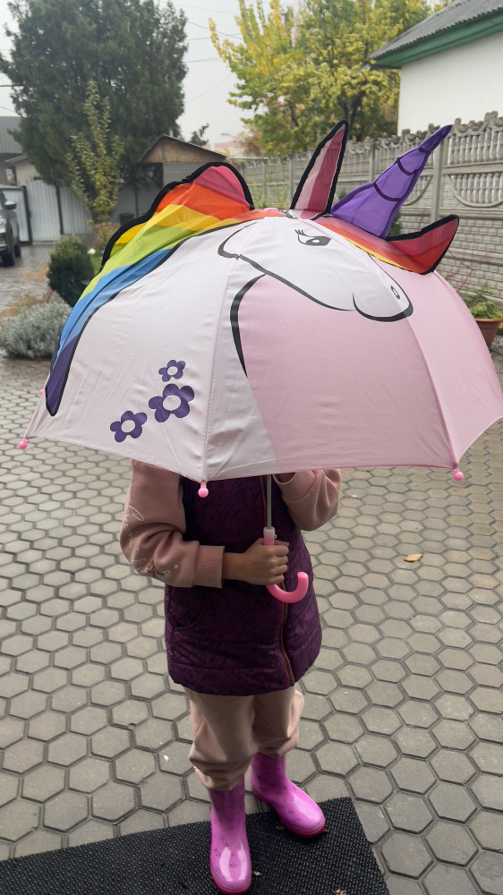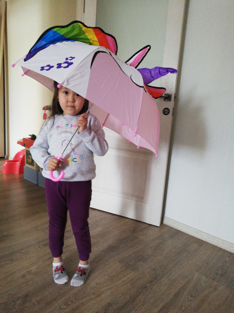 Хороший зонт, размер полноценный совсем маленькому ребёнку будет большой.
