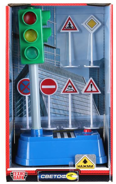 Технопарк Набор игровой «Светофор и дорожные знаки»-35% +250 образовательная ценность изучение ПДД полезная игрушка увлекательность громкость озвучивания