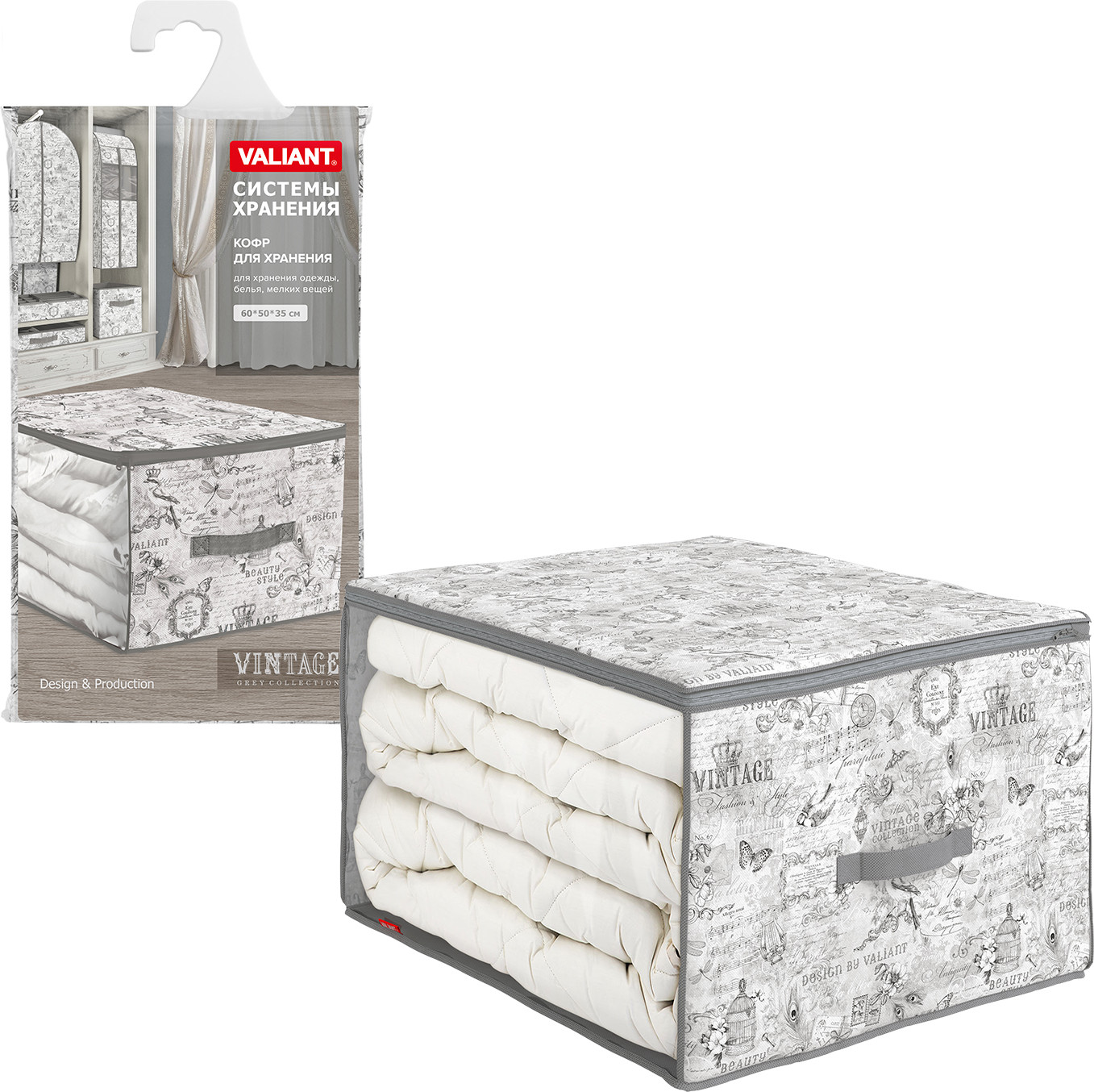 В данный момент этот товар отсутствует в продаже. Возможно, у нас найдется аналогичный или похожий товар здесь. Серия: Vintage Grey Вместительный кофр изготовлен из высококачественного прочного нетканого материала и предназначен для долговременного хранения вещей. Закрывается крышкой на застежку-молнию. Одна из боковых сторон выполнена из прозрачного ПВХ, что позволит видеть содержимое. Для удобства в обращении имеется ручка.