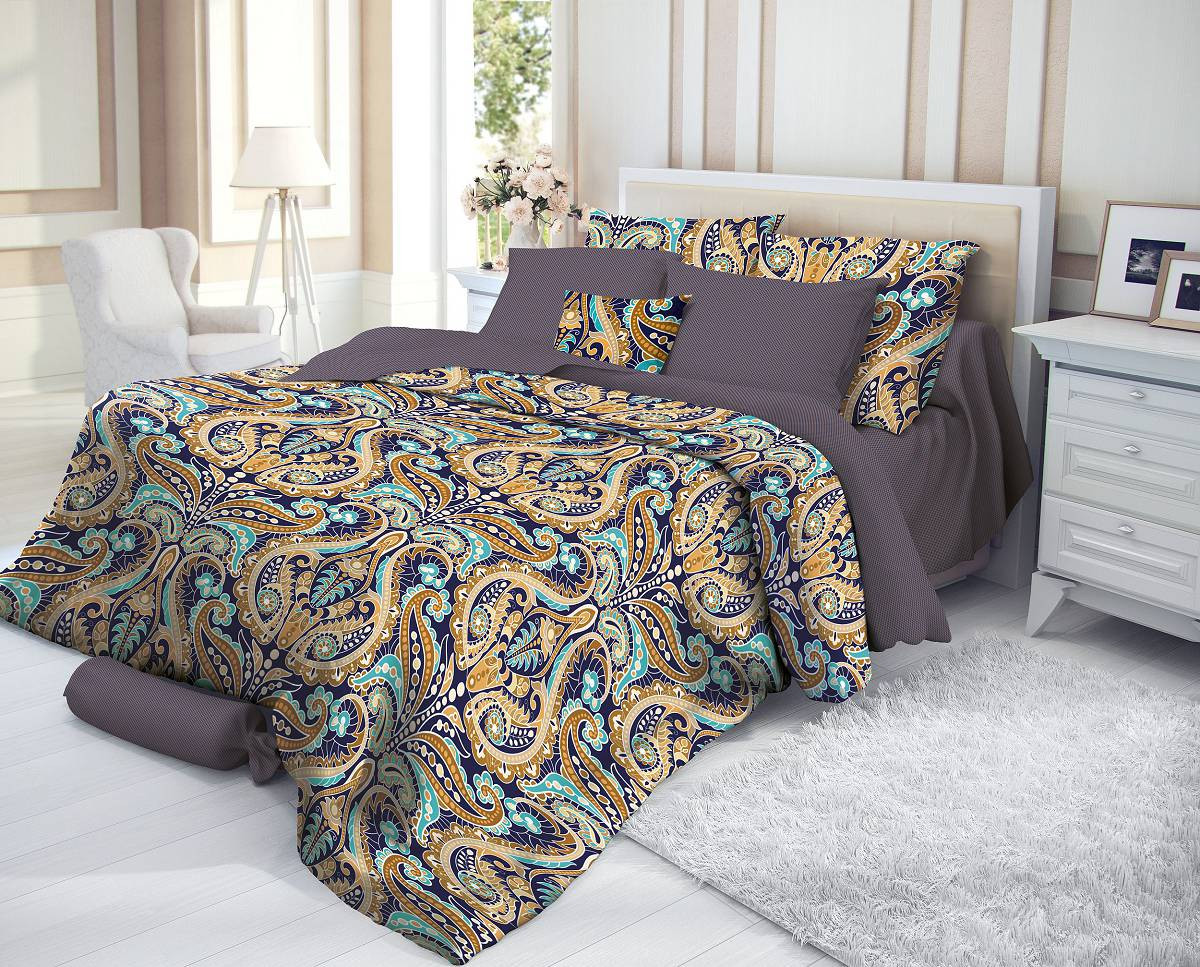 Постельное белье «Verossa» следует за сменой сезонов в природе и настроения в интерьере, создавая для каждого времени года свое уникальное решение: тонкость и нежность перкаля для весны и лета, мягкость сатина и плотность страйпа — для зимы и осени. Узоры комплекта «Deira» похожи на переплетение роз в летнем саду, где можно сесть в тени оливкового дерева, взять томик стихов Франческо Петраркии погрузиться в чтение. В комплекте, помимо лазурно-золотого орнамента,присутствует благородный темно-фиолетовый цвет, как если бы в саду под рукой была чашка горячего чая и пара плиток горького шоколада. Орнамент преисполнен изяществом итальянской поэзии, а сочетание цветов дает ощущение комфорта и уединения.