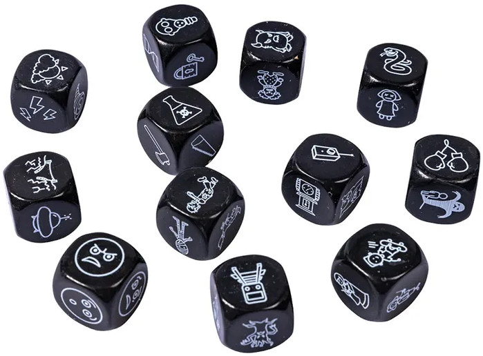Второй вариант игры – для большой компании. После жеребьёвки первый игрок бросает все 12 кубиков и на основе выпавших изображений сочиняет свою, леденящую душу, историю. Игра усложняется тем, что игрокам нужно запомнить каждую из историй и потом её пересказать.