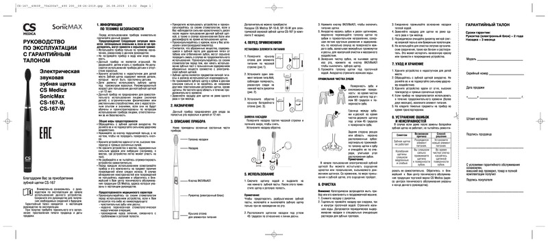 CS Medica Зубная щетка электрическая звуковая CS-167