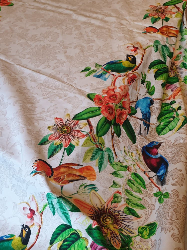 Это простая ХЛОПКОВАЯ скатерть. Не рогожка, как указано в описании. Капнула на неё воды для фото и тут же всё насквозь пропиталось. Ни глянца, ни водооталкивающего слоя. Как видите, прекрасно мнётся. Рисунок красивый, яркий, как на фото производителя. Ткань мягкая, приятная. Для праздников хорошо. На каждый день - нет. Крошки с неё не соберёшь, только саму скатерть стряхивать.